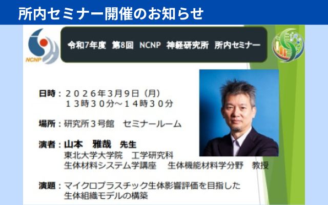 - 研修・セミナー 神経研究所 2026年3月2日(月)「令和7年度 第6回NCNP国際セミナー」を開催します。